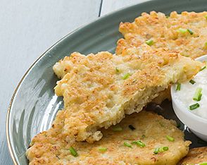 • Verhit een laagje zonnebloemolie in een pan en schep hier 3 scheppen van het bloemkoolbeslag in en druk iets plat. Bak in ca. 3 minuten goudbruin en bak dan ook de andere zijde.