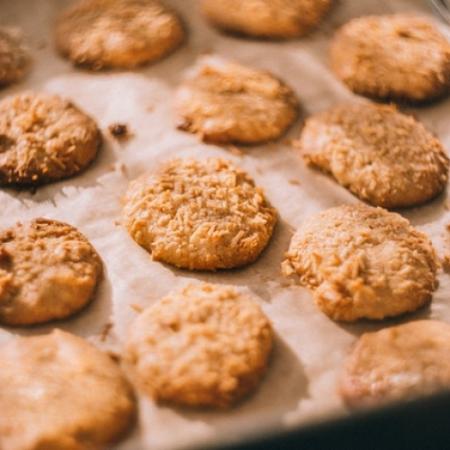 4. Leg de koekjes op een rooster met bakpapier. Garneer als je wilt nog met gehakte noten zoals amandelschaafsel, pistache of pompoenpitten voor extra vezels.